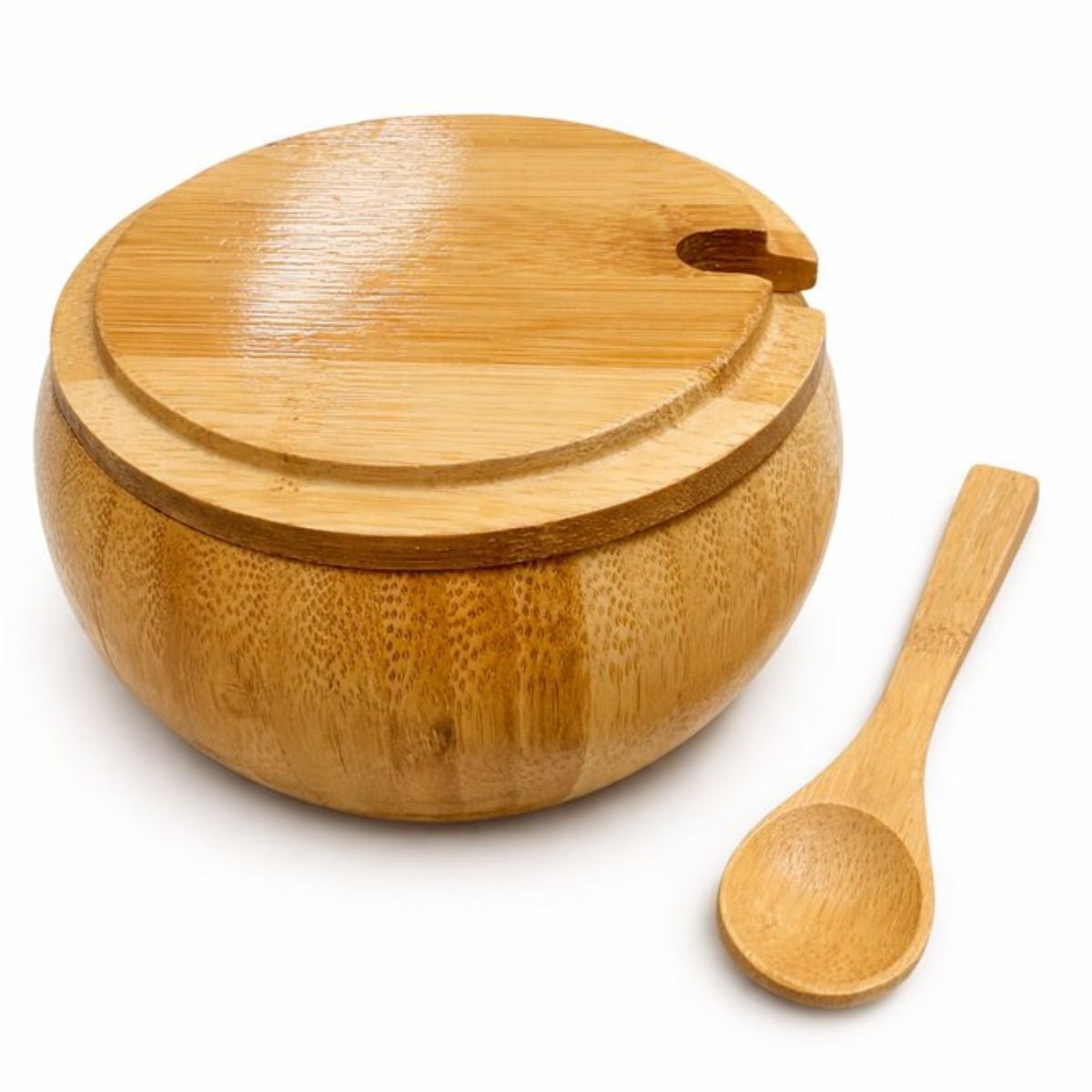 FICHA TÉCNICA E CONTEÚDO Material: 100% Bambu Altura: 7 cm Diâmetro: 10 cm Capacidade: 300g Peso: 209g Cor: Natural (Bege) Formato: Redondo Componentes: 2 Peças Tampa: Inclusa Colher: Inclusa Origem: Sustentável Acabamento: Liso Selado