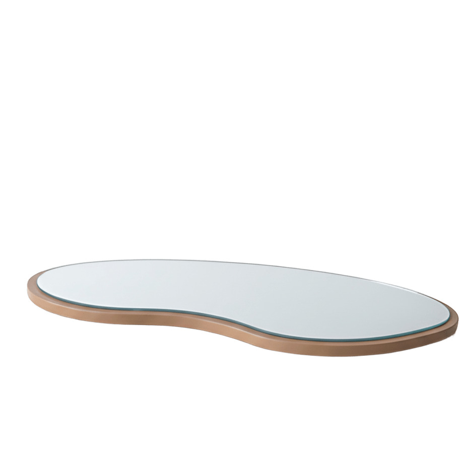 Bandeja Decorativa Orgânica Espelho Lapidado Luxo Lateral Couro - Freijó