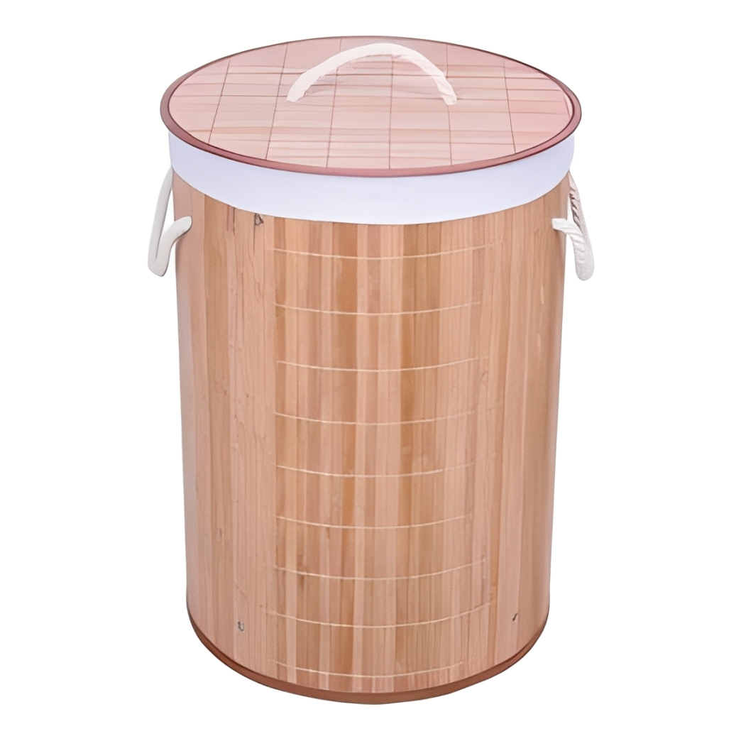 Cesto de Roupa Suja Bambu Redondo- Organização com Design Natural