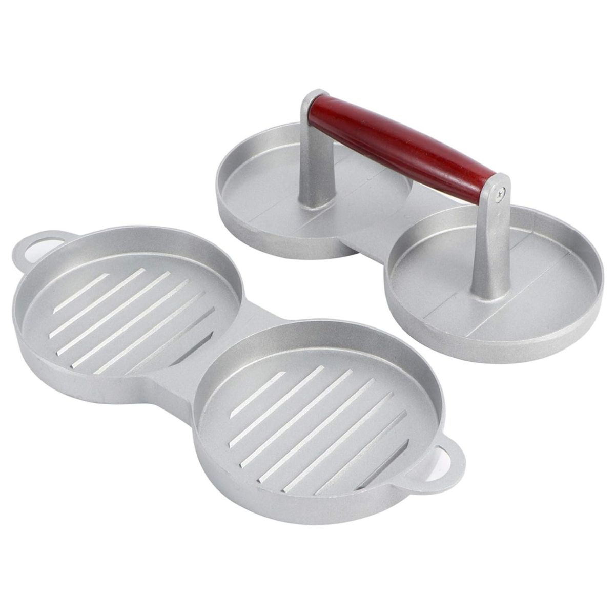 Forma Hambúrguer Dupla Prensa Modeladora Alumínio Cabo de Madeira