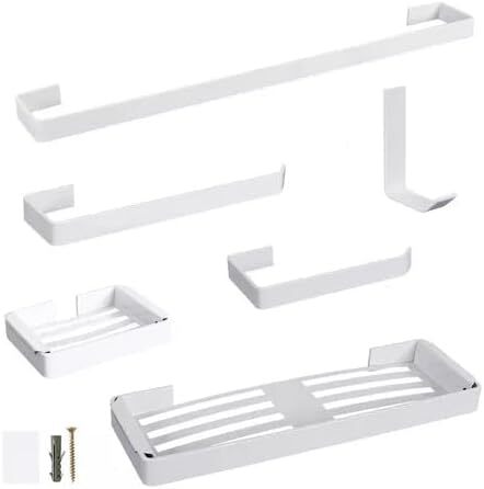 Kit para Banheiro Completo - Porta Toalha, Saboneteira e Gancho - Branco