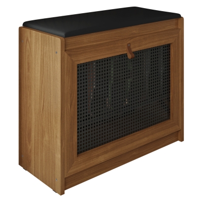 Sapateira Entrada com Banco Estofado Nature Marrom Porta Ratan Madeira Maciça