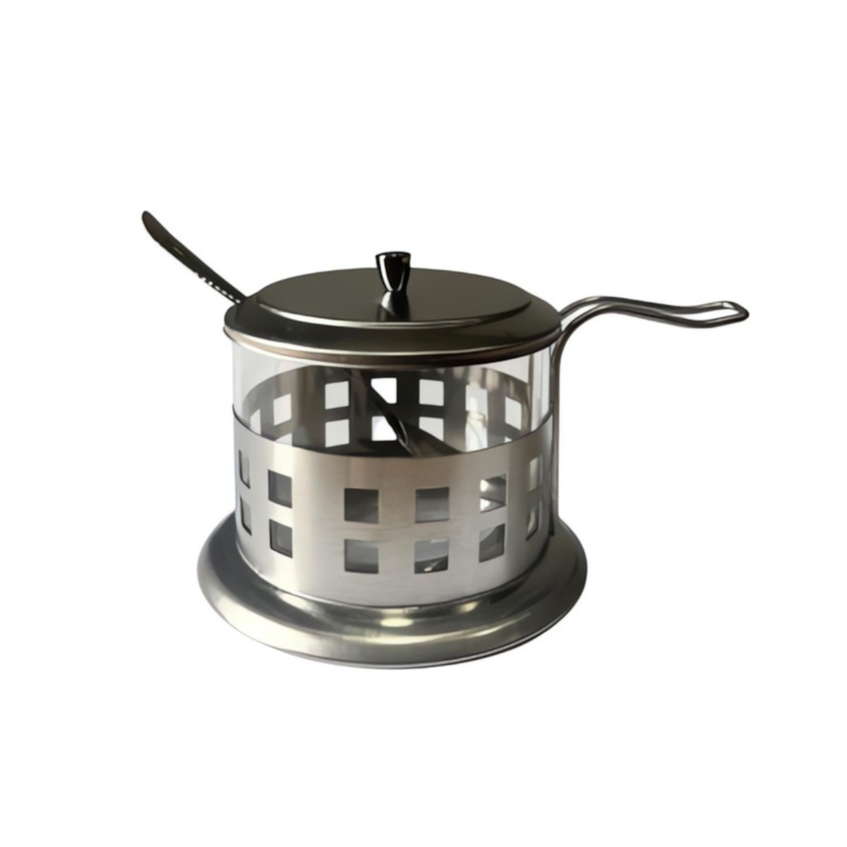 Açucareiro Elegante: Vidro e Aço Inox | Tampa e Colher Inclusas