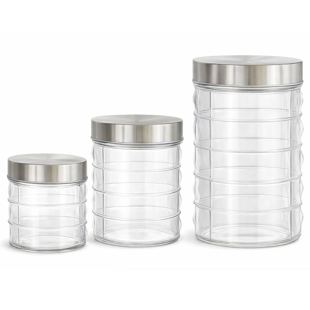 Conjunto 3 Potes Vidro Mantimentos Tampa Inox 800 1200 1600ml