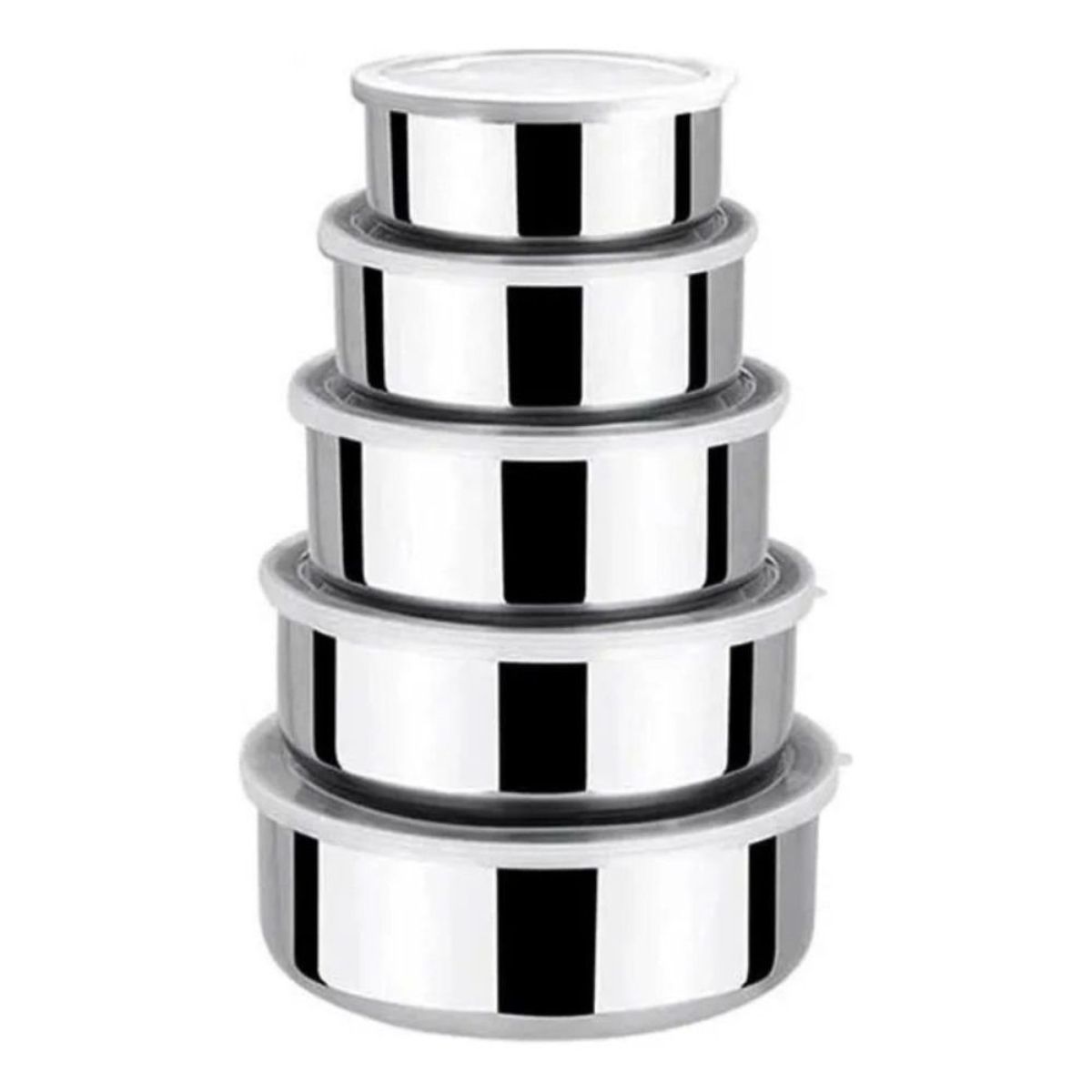 Conjunto 5 Potes Herméticos Redondos Inox com Tampa - 250ml a 1200ml