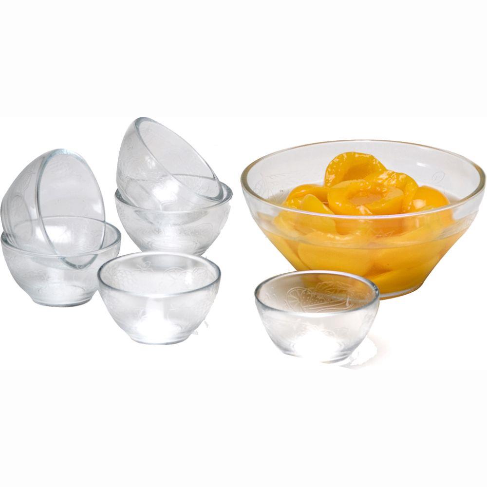 Possui Saladeira Grande mais 6 pequenas para servir Produzido com as melhores Matérias Primas. Vidro totalmente Cristalino e muito Resistente.