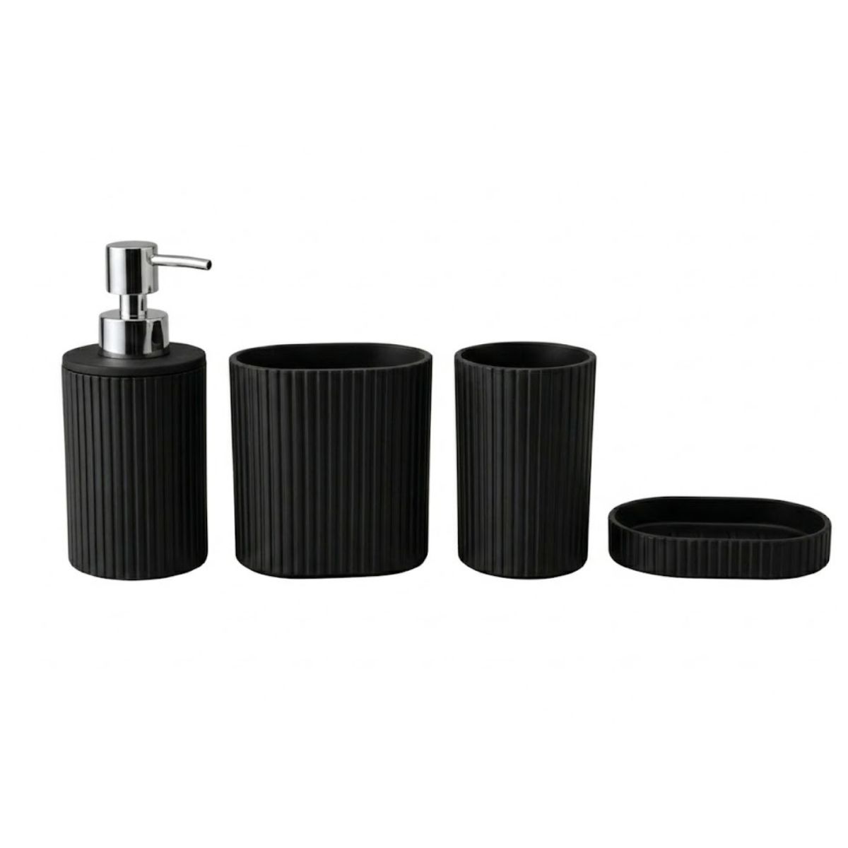 Kit Banheiro Preto com Bambu: 4 Peças (Dispenser, Porta Escova, Copo, Saboneteira)