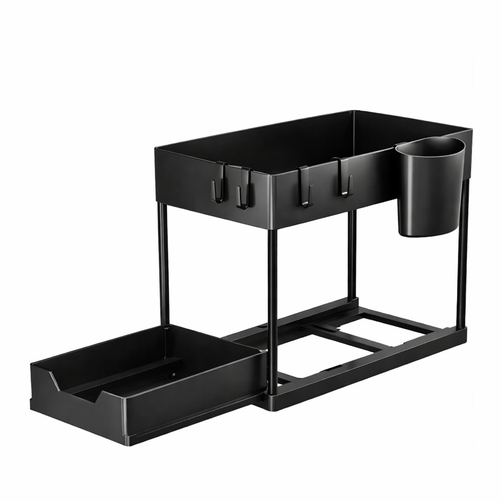 Organizador Multiuso com Bandeja Corrediça - Estrutura em Metal Preto, 40x35x22 cm